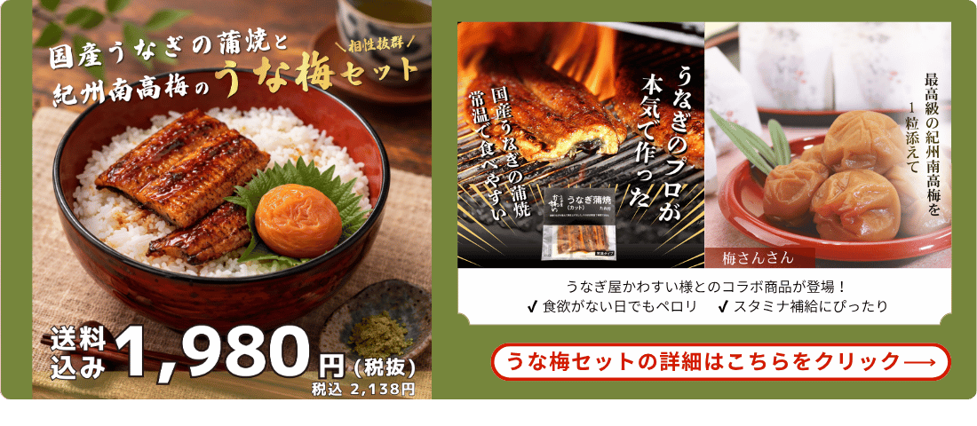 国産うなぎの蒲焼×紀州南高梅のうな梅(うなうめ)相性抜群セット|【配送日指定不可・代引き不可商品】 ¥2,500