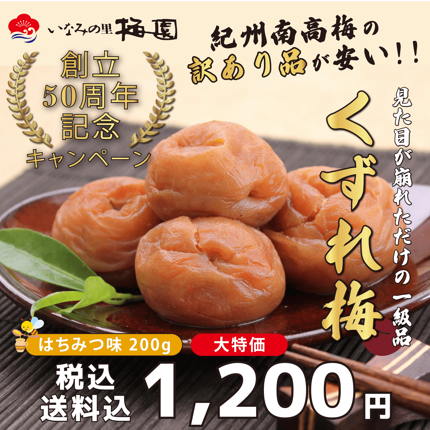 紀州南高梅くずれ梅 はちみつ味 塩分約8%|いなみの里梅園50周年記念キャンペーン大特価商品【配送日指定不可・代引き不可商品】 ¥1,200